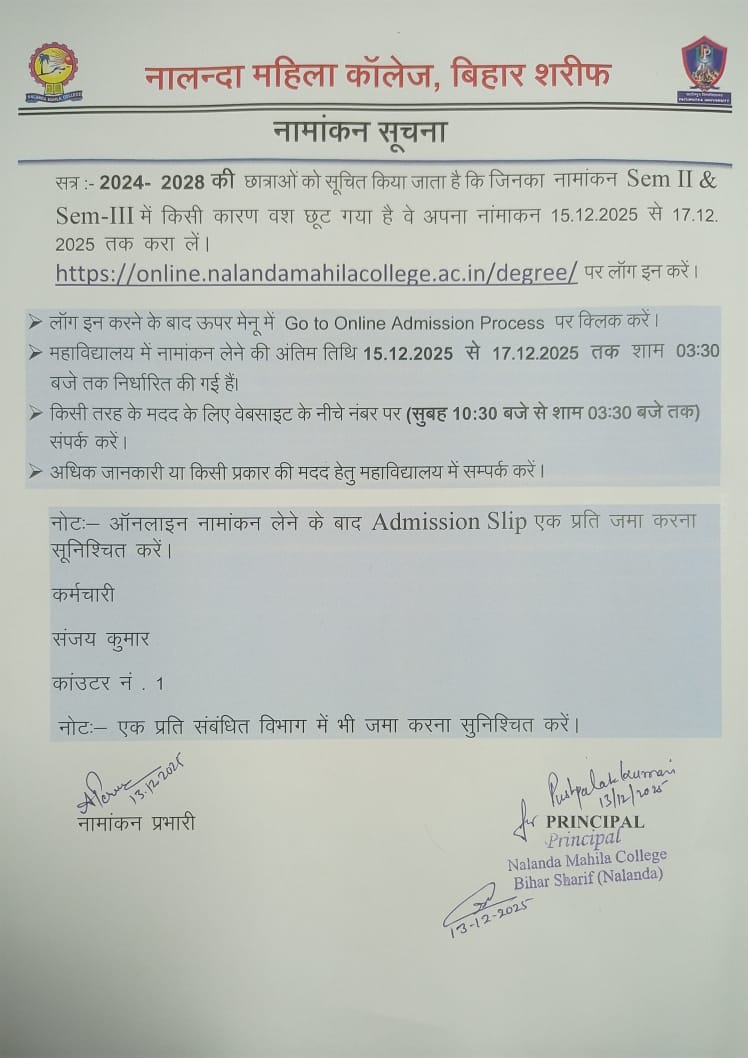 NOTICE REGARDING DATE EXTEND UG ADMISSION 2ND,3RD SEMESTER (2024-28)