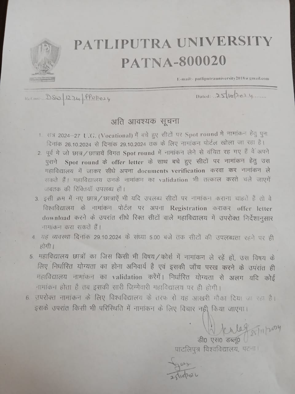 NOTICE REGARDING UG VOCATIONAL ADMISSION (2024-27)
